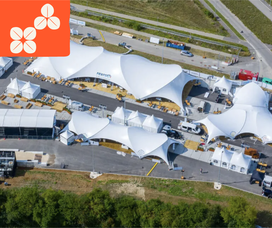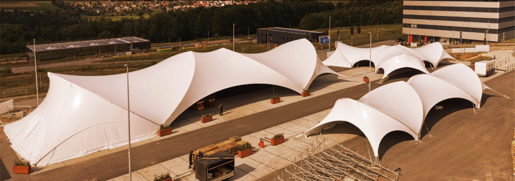 The QUADRO variant is a cross-shaped arrangement, four main roofs which are connected by an intermediate Quatro tarpaulin.